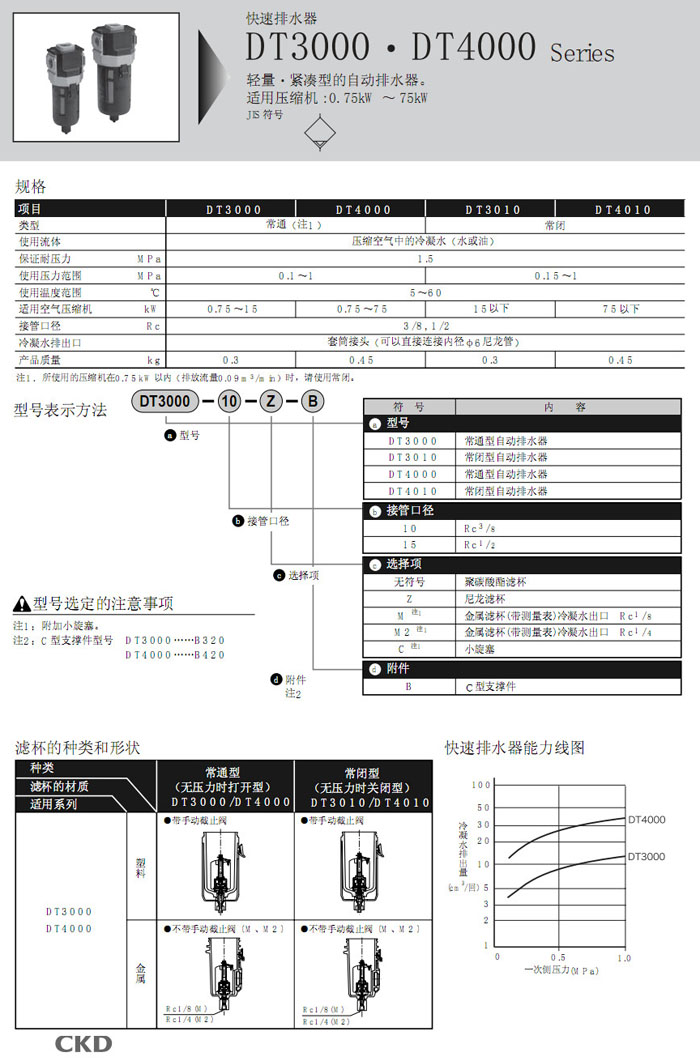 DT3000-10,DT3000-15,DT3010-10,DT3010-15,DT4000-10,DT4000-15,DT4010-10,DT4010-15,CKD快速排水器