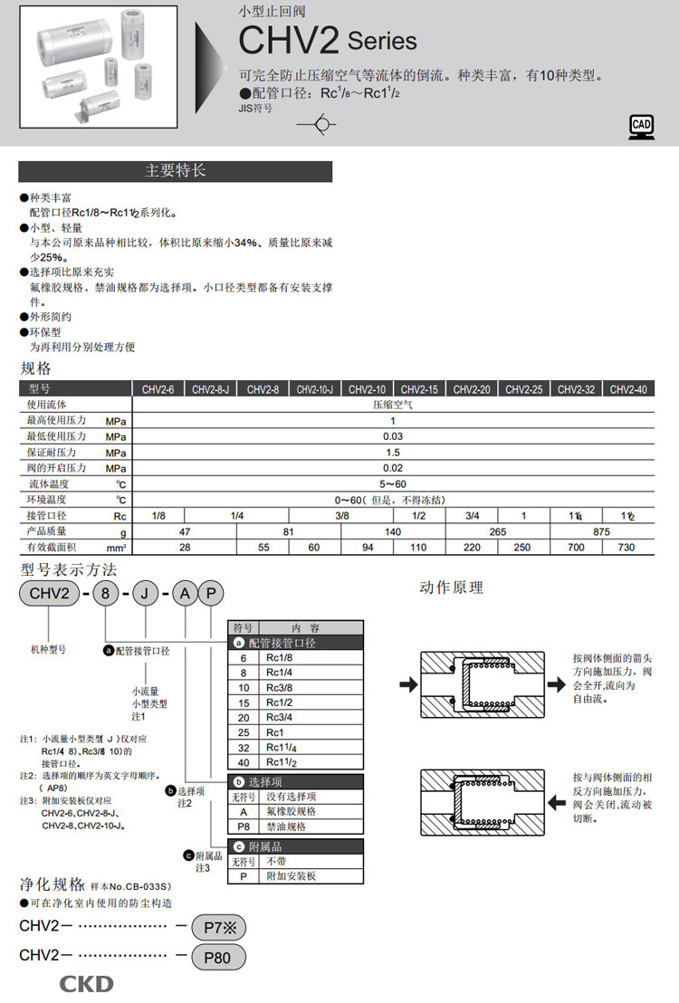 CHV2-6,CHV2-8-J,CHV2-8,CHV2-10-J,CHV2-10,CHV2-15,CHV2-20,CHV2-25,CHV2-32,CHV2-40,CKD止回閥 |