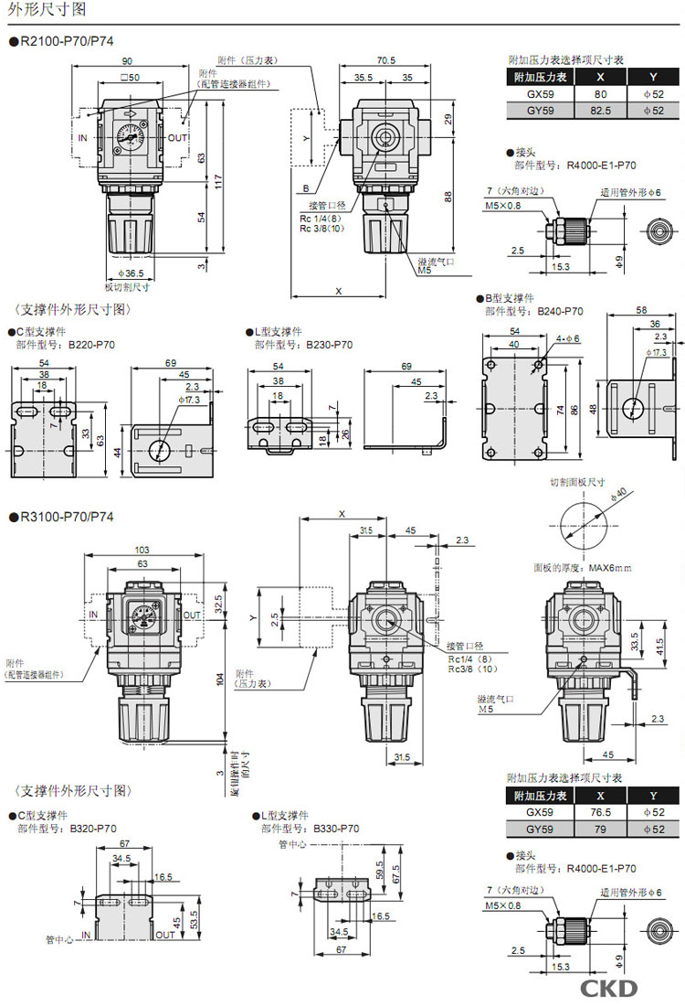 R2100-8,R2100-10,R3100-8,R3100-10,R4100-8,R4100-10,R4100-15,R6100-15,R6100-20,R6100-25,CKD可逆流減壓閥 |
