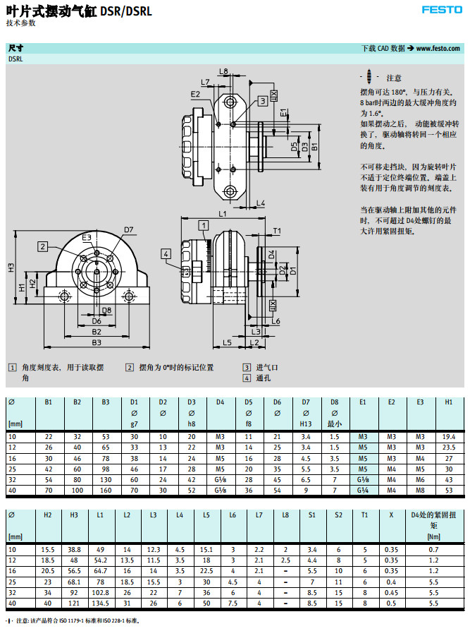 DSRL-10,DSRL-12,DSRL-16,DSR-25,DSR-32,DSR-40,festo葉片式擺動(dòng)氣缸