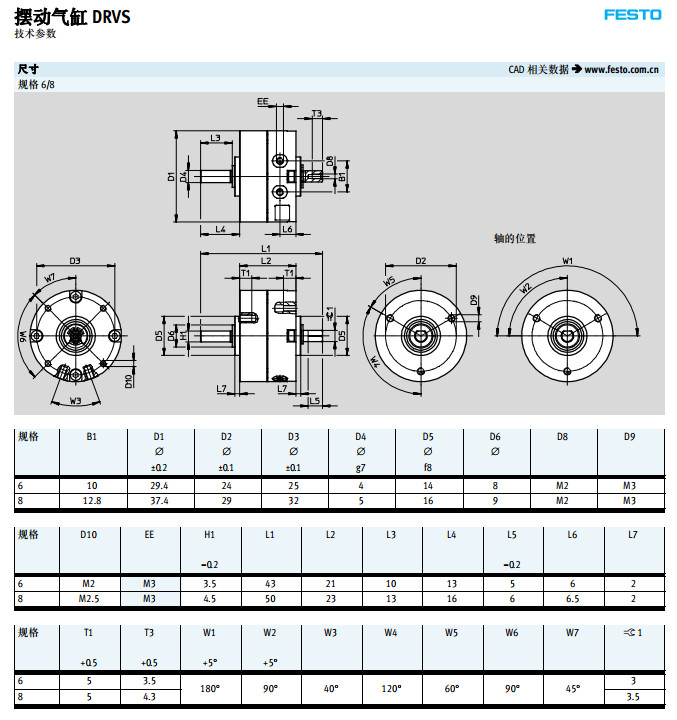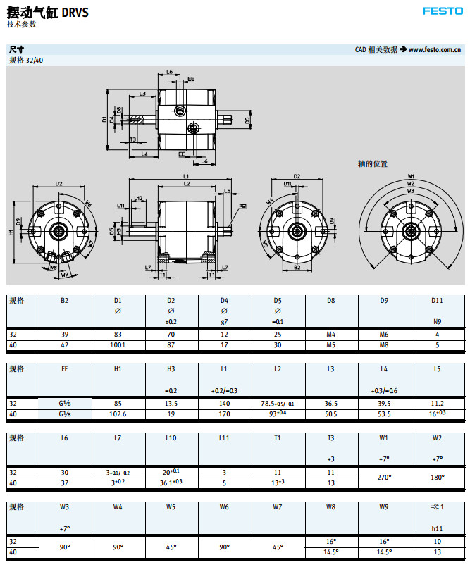 DRVS-6,DRVS-8,DRVS-12,DRVS-16,DRVS-25,DRVS-32,DRVS-40,festo擺動(dòng)氣缸