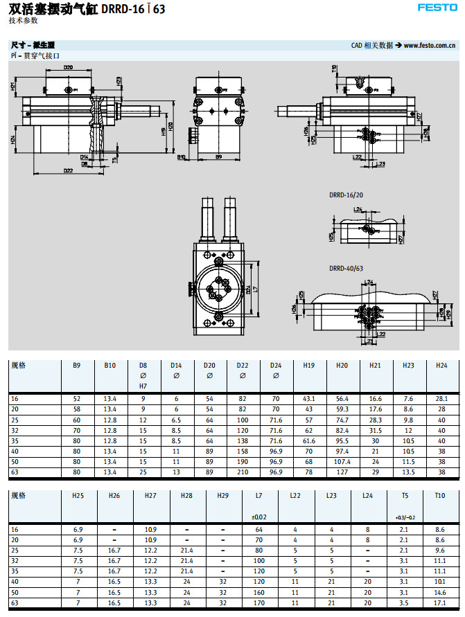 DRRD-16,DRRD-20,DRRD-25,DRRD-32,DRRD-40,DRRD-50,DRRD-63,festo擺動(dòng)氣缸