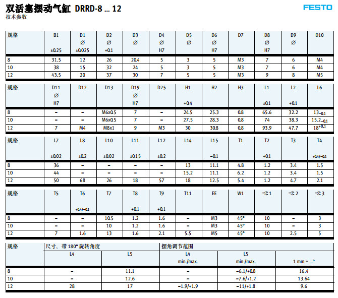 DRRD-8-180-FH-PA,DRRD-10-180-FH-PA,DRRD-12-180-FH-PA,festo擺動(dòng)氣缸