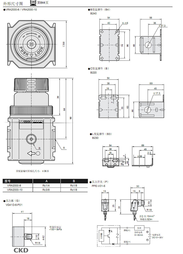 VRA2000-8,VRA2000-10,VRA2000-8G,VRA2000-10G,VRA2000-8N,VRA2000-10N,CKD真空減壓閥