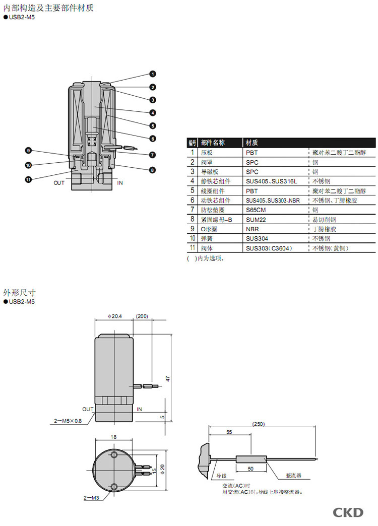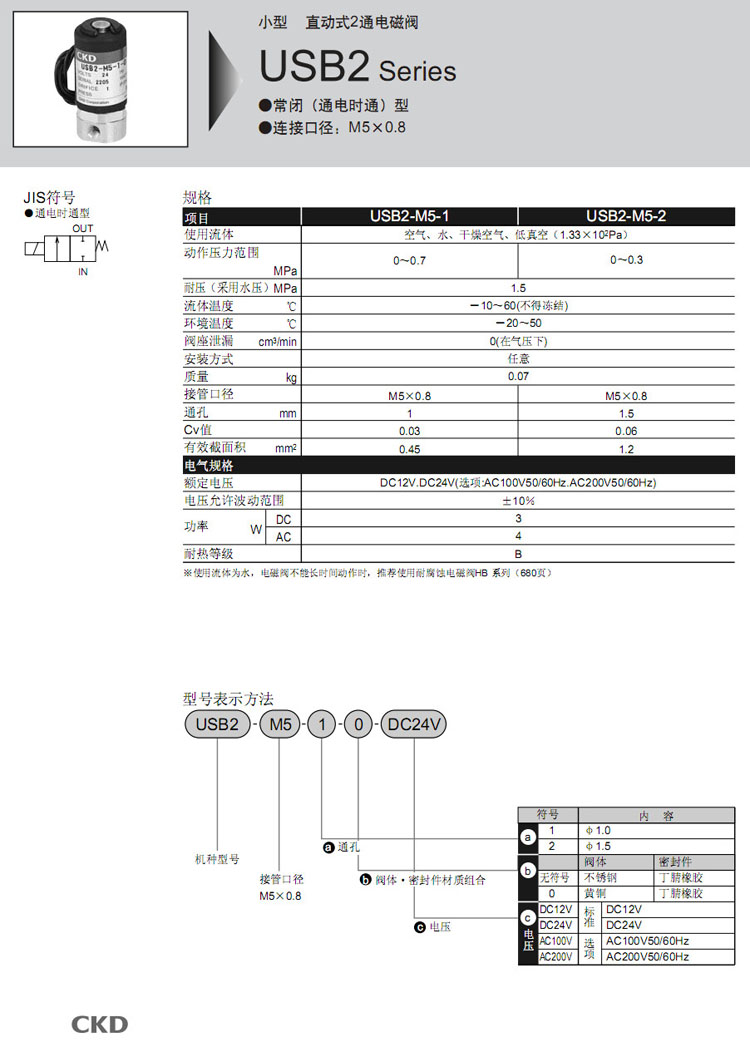 USB2-M5-1,USB2-M5-2,CKD直動(dòng)式2通電磁閥