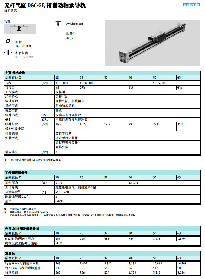 DGC-18-1000-GF,DGC-25-1000-GF,DGC-32-1000-GF,DGC-40-1000-GF,festo無桿氣缸