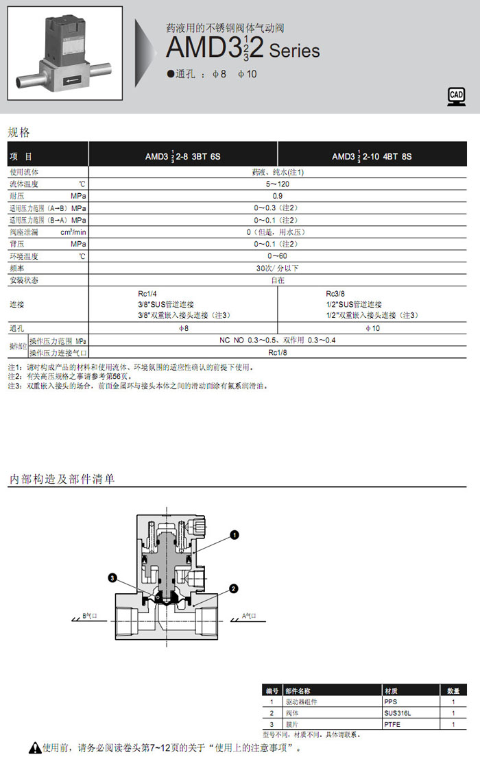 AMD312-8,AMD322-8,AMD332-8,AMD312-10,AMD322-10,AMD332-10,AMD312-3BT,CKD藥液用氣動(dòng)閥