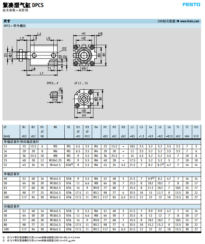 DPCS-12,DPCS-16,DPCS-20,DPCS-25,DPCS-32,DPCS-40,festo緊湊型氣缸