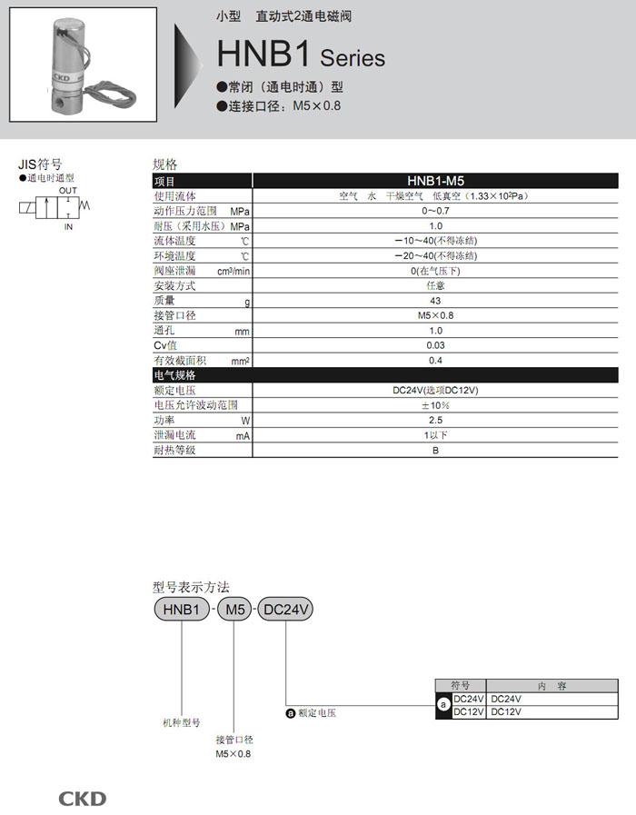 HNB1-M5,CKD直動(dòng)式2通電磁閥