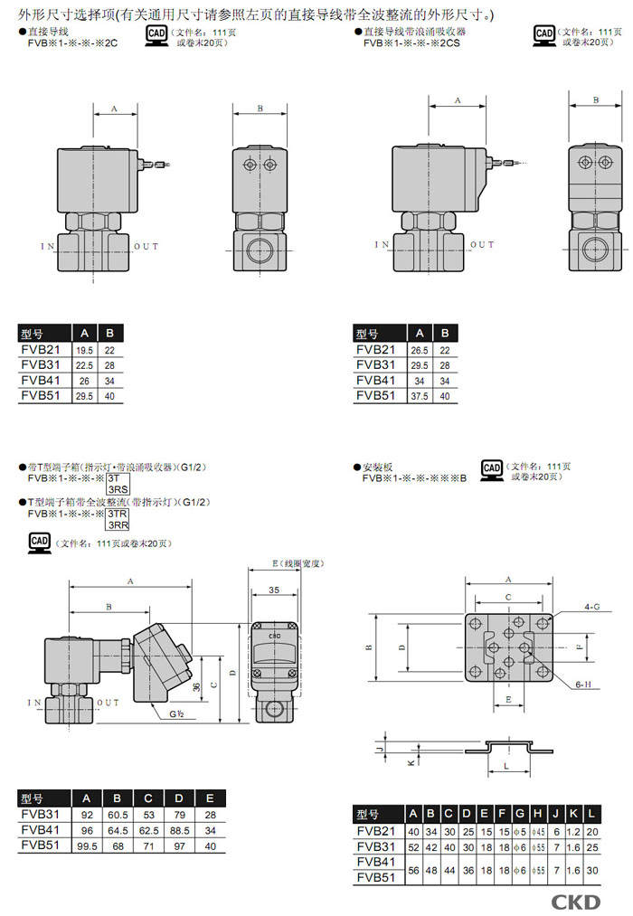 FVB21-6-Z-B2CR,FVB31-6-3-B2CR,FVB41-8-5-B2CR,FVB51-8-5-B2CR,FVB51-8-6-B2CR,CKD直動式2通電磁閥 |
