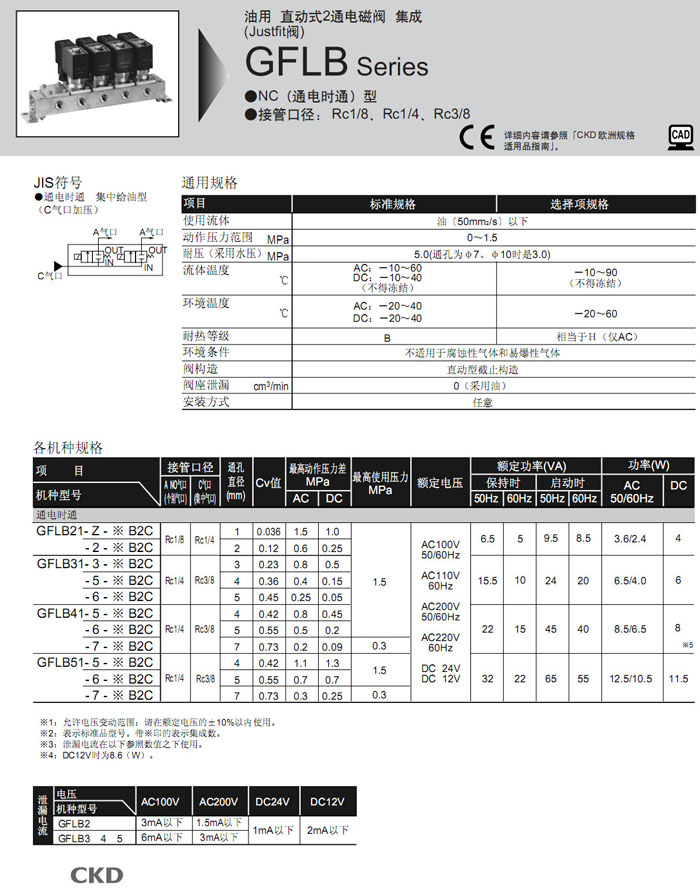 GFLB21-Z-2-12CR,GFLB31-3-2-12CR,GFLB41-5-2-12CR,GFLB51-5-2-12CR,CKD直動式2通電磁閥