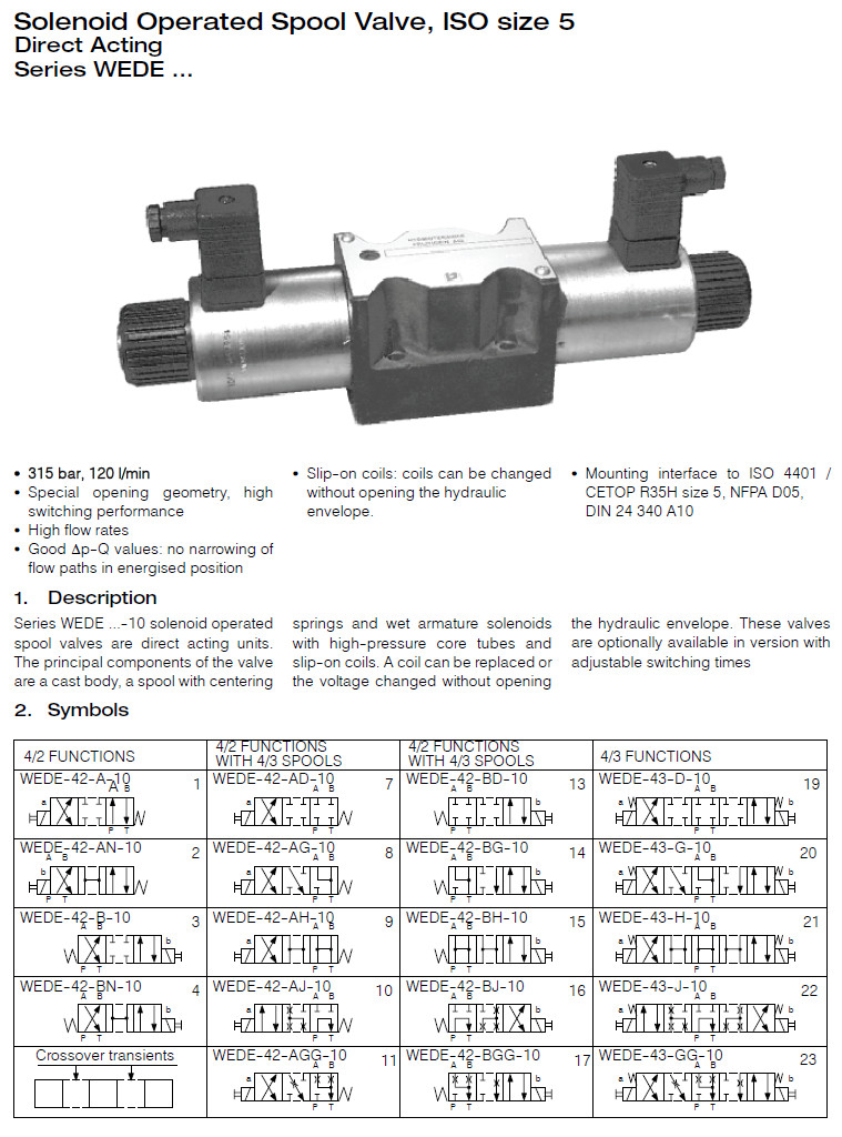 WEDE-43-AD,WEDE-43-B,WEDE-43-D,WEDE-42-G,WEDE-42-AD,WEDE-42-B,Bucher直動式電磁換向閥