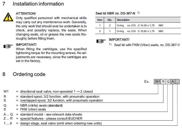W1RQA1,W1RSA1,W1SQA1,W1SSA1,Bucher方向閥