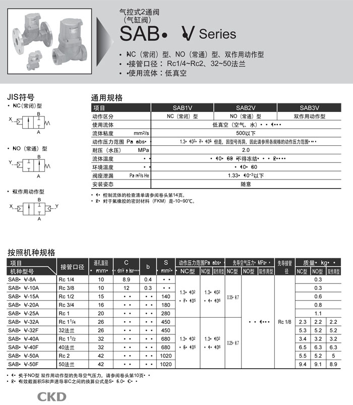 SAB1V-40F,SAB1V-50A,SAB1V-50F,SAB2V-8A,SAB2V-10A,SAB2V-15A,SAB2V-20A,SAB2V-25A,CKD氣控式2通閥 |