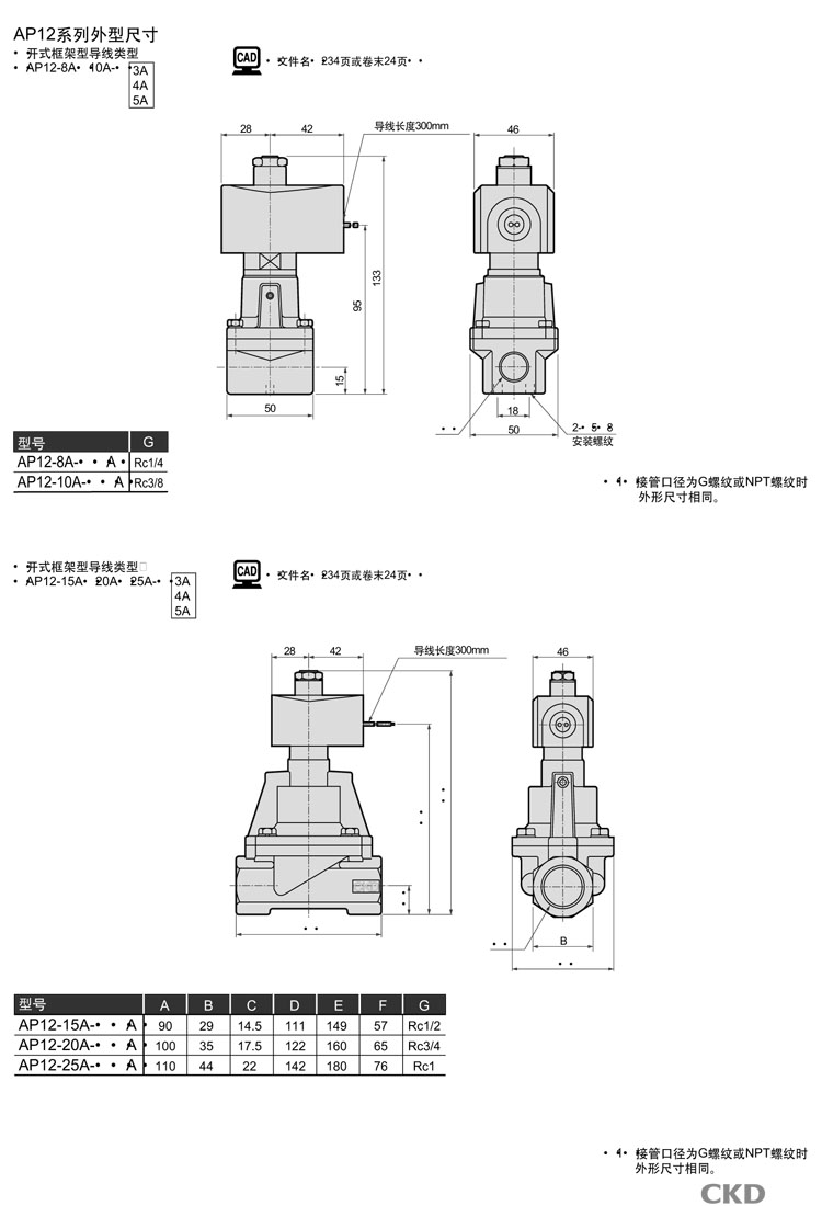 AP12-25A-N4A AP12-25A-N4K AP12-25A-N4H AP12-25A-N5A AP12-25A-N5K AP12-25A-N5H CKD先導(dǎo)式式2通電磁閥
