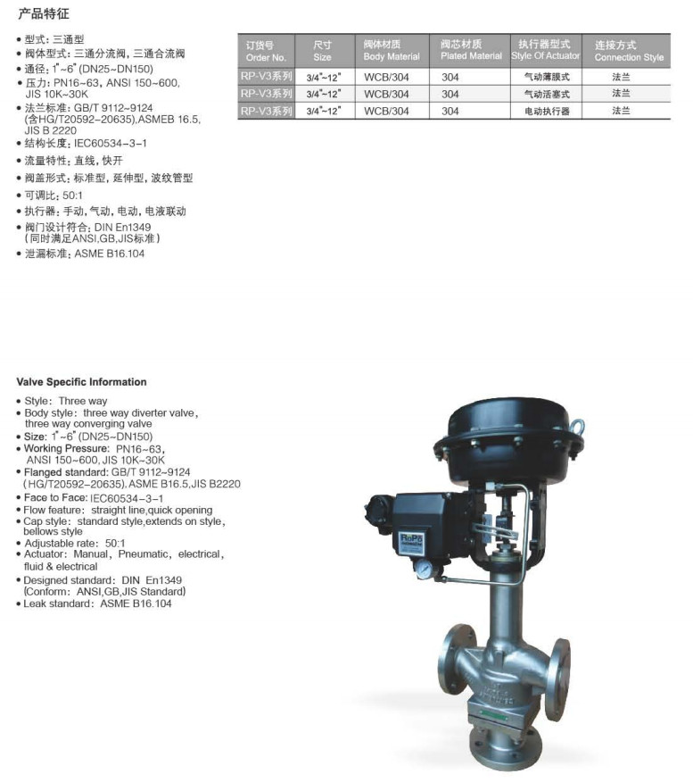 RV-V3-DN25,RV-V3-DN40,RV-V3-DN50,RV-V3-DN65,RV-V3-DN80,RV-V3-DN100,RV-V3-DN125,RV-V3-DN150,三通調(diào)節(jié)閥 |