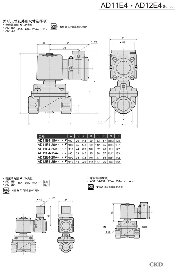 AD11E4-15A,AD11E4-20A,AD11E4-25A,AD12E4-15A,AD12E4-20A,AD12E4-25A,CKD先導(dǎo)式2通電磁閥
