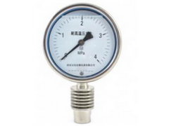 耐高溫壓力表在耐溫壓力表的基礎(chǔ)上加裝不銹鋼隔離散熱器,內(nèi)充隔離液體,測量的介質(zhì)溫度可達(dá)≤850℃。主要測量高溫高壓的蒸汽壓力,適用于石油開采和熱點(diǎn)行業(yè)。 舌型壓力表主要用于測量高粘度,易結(jié)晶物質(zhì)的壓力。主要用于造紙化纖等行業(yè)。