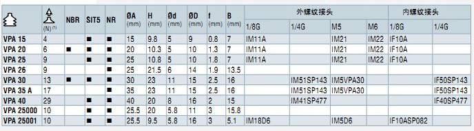 VPA系列紙張吸盤,Ø15 - 25.5mm,材料:丁腈橡膠(NBR),半透明硅膠(SIT),天然橡膠(NR)。