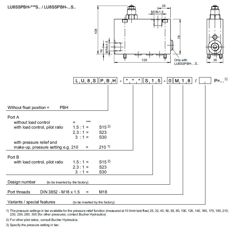 LU8SPBH-S15S15-0M18,LU8SPBH-S23S15-0M18,LU8SPBH-S30S15-0M18,Bucher負(fù)荷控制閥