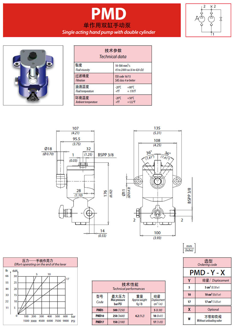 PMD5-W,PMD10-W,PMD17-W,單作用雙缸手動泵