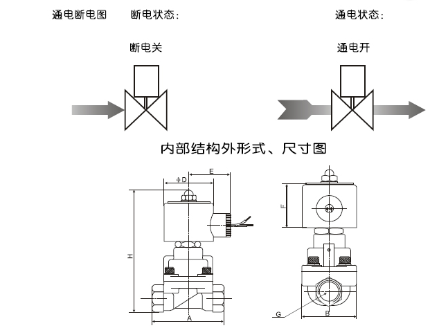 二位二通常閉型電磁閥,斷電關(guān)閉,通電打開閥體材質(zhì)為銅