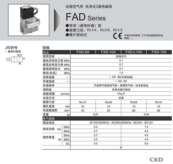 FAD-8A,FAD-10A,FAD-L10A,FAD-15A,FAD-8A-2CB-AC100V,FAD-8A-2C-AC100V,CKD先導(dǎo)式2通電磁閥 |