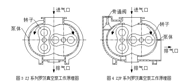 一、ZJ系列羅茨真空泵是利用一對8字型轉(zhuǎn)子在泵殼中保持一定的間隙,作等速反向旋轉(zhuǎn)而產(chǎn)生吸氣和排氣作用的(見圖3)。