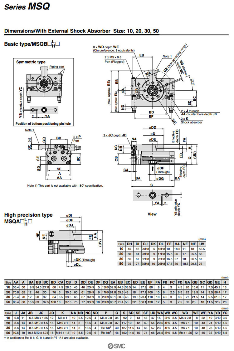 MSQB10L2,MSQB20L2,MSQB30L2,MSQB50L2,MSQB10H2,MSQB20H2,MSQB30H2,MSQB50H2,SMC擺臺氣缸