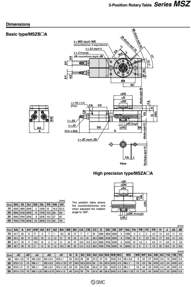 MSZA10A,MSZA20A,MSZA30A,MSZA50A,MSZB10A,MSZB20A,MSZB30A,MSZB50A,SMC3位擺臺(tái)氣缸