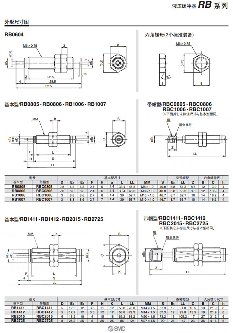 RBC0805,RBC0806,RBC1006,RBC1007,RBC1411,RBC1412,RBC2015,RBC2725,SMC液壓緩沖器