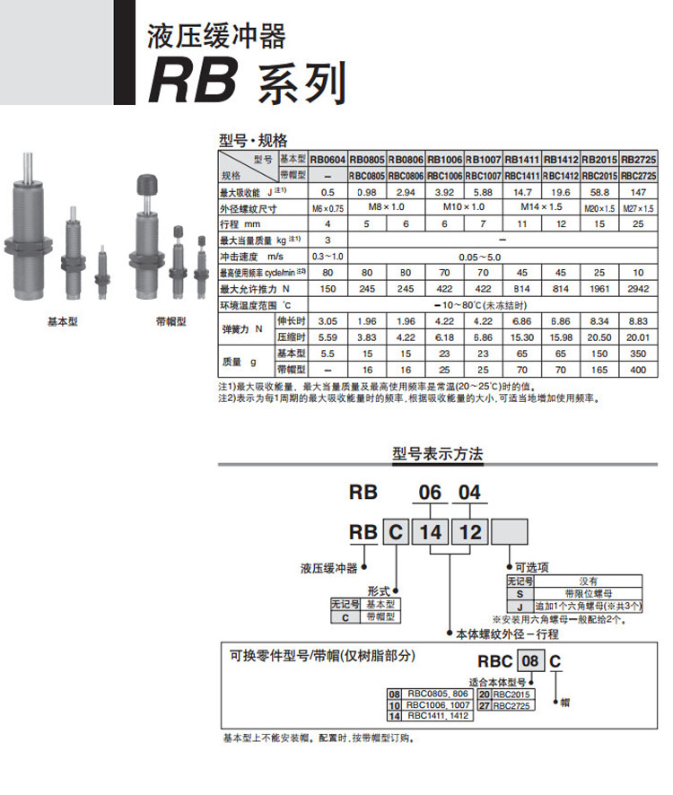 RB0604,RB0805,RB0806,RB1006,RB1007,RB1411,RB1412,RB2015,RB2725,SMC液壓緩沖器