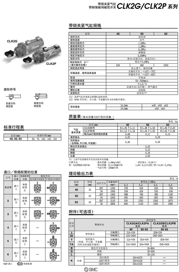 CLK2GA40-50,CLK2GA50-50,CLK2GA63-50,CLK2GB40-50,CLK2GB50-50,CLK2GB63-50,SMC帶鎖夾緊氣缸