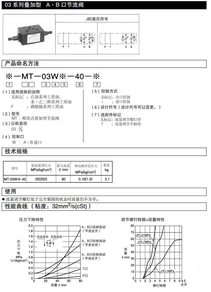 MT-03W-40,MT-03Wi-40,DAIKIN疊加型節(jié)流閥