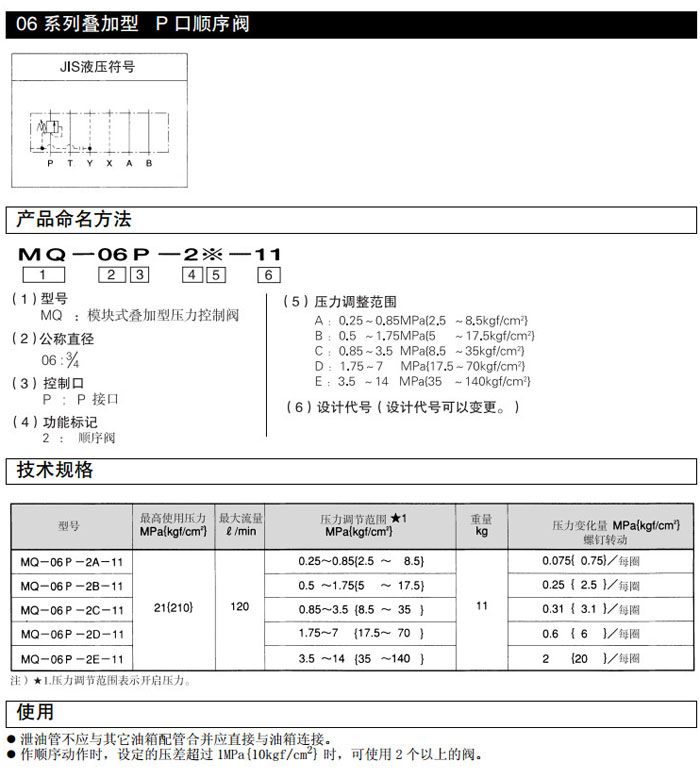 MQ-06P-2A-11,MQ-06P-2B-11,MQ-06P-2C-11,MQ-06P-2D-11,MQ-06P-2E-11,DAIKIN疊加型順序閥