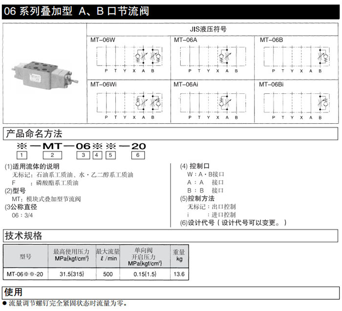 MT-06W-20,MT-06Wi-20,MT-06A-20,MT-06Ai-20,MT-06B-20,MT-06Bi-20,DAIKIN疊加型節(jié)流閥
