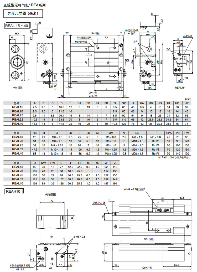 REAH10-150,REAH15-150,REAH20-200,REAH25-200,REAHT25-200,REAHT32-200,REAH10-200,SMC正弦無桿氣缸