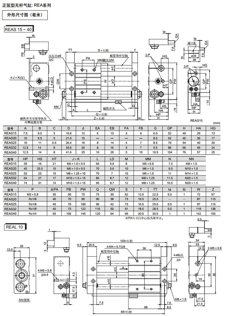 REAL10-150,REAL15-150,REAL20-200,REAL25-200,REAL32-200,REAL40-200,REAL10-200,SMC正弦無(wú)桿氣缸