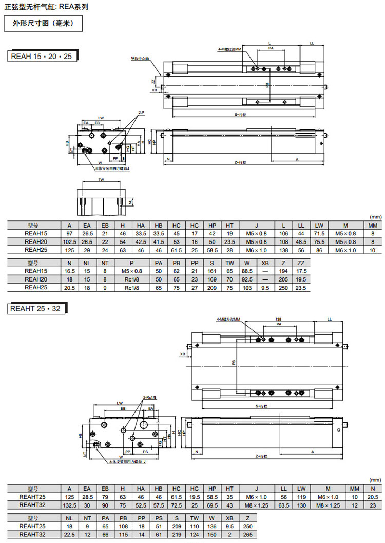 REAR10-150,REAR15-150,REAR20-200,REAR25-200,REAR32-200,REAR40-200,REAR10-200,SMC正弦無(wú)桿氣缸