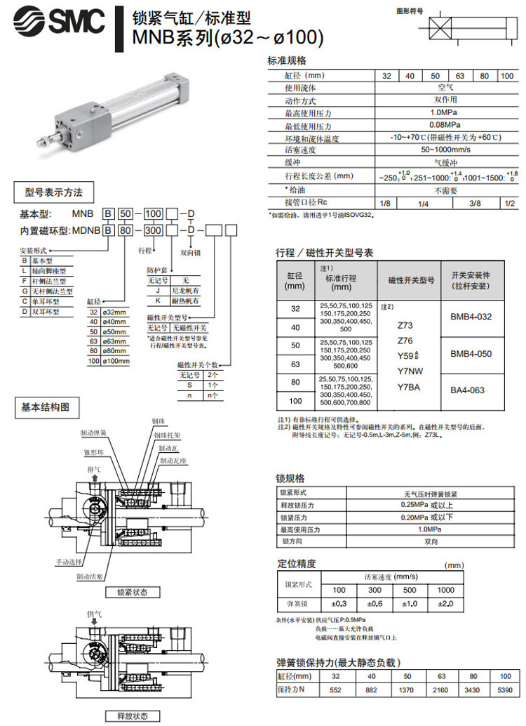 MDNBD100-350,MDNBD100-400,MDNBD100-450,MDNBD100-500,MDNBD100-600,MDNBD100-700,MDNBD100-800,MDNBD63-350,MDNBD63-400,SMC標(biāo)準(zhǔn)型鎖緊氣缸