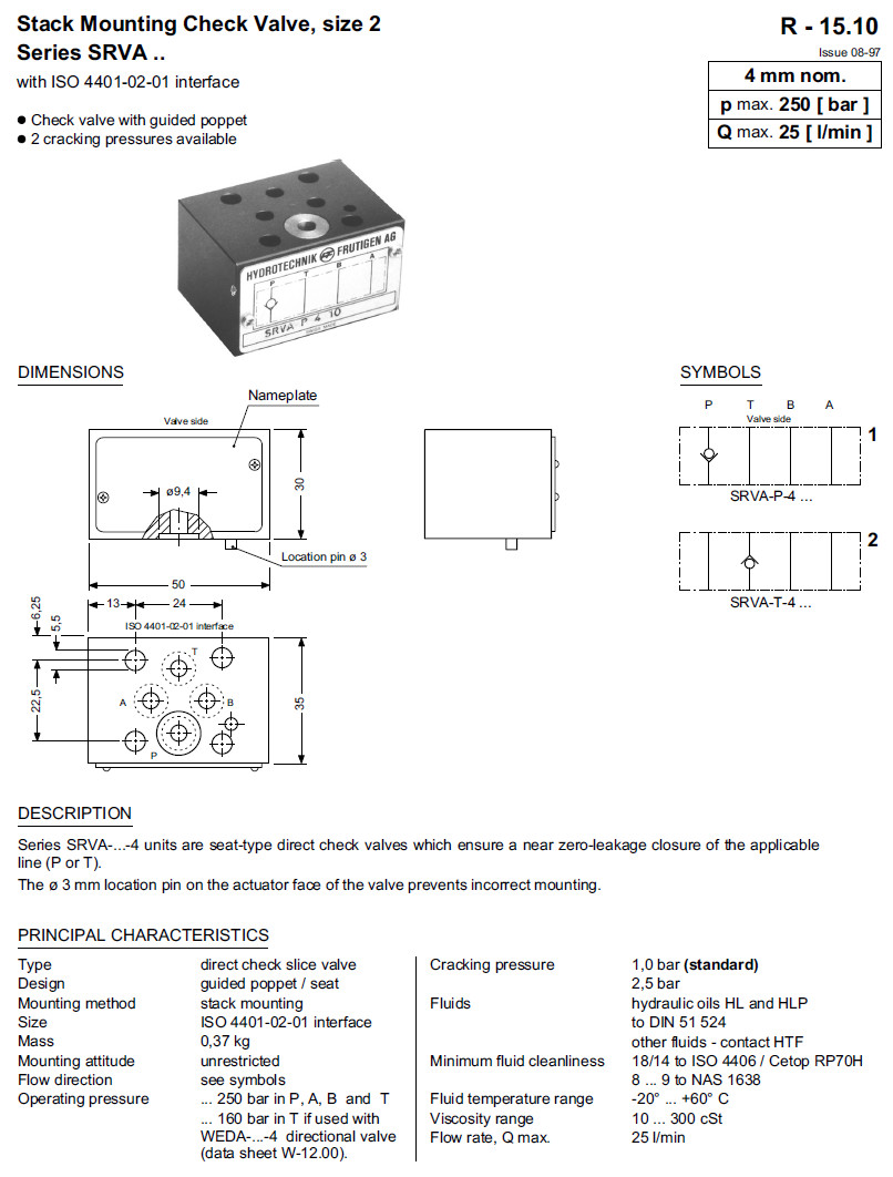SRVA-P-4-10-1,SRVA-T-4-10-1,SRVA-P-4-25-1,SRVA-T-4-25-1,Bucher疊加閥 |