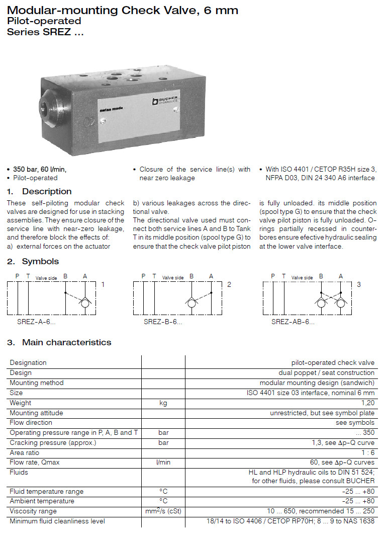 SREZ-A-6-1,SREZ-B-6-1,SREZ-AB-6-1,SREZ-A-6-V-1,SREZ-B-6-V-1,SREZ-AB-6-V-1,Bucher模塊安裝止回閥
