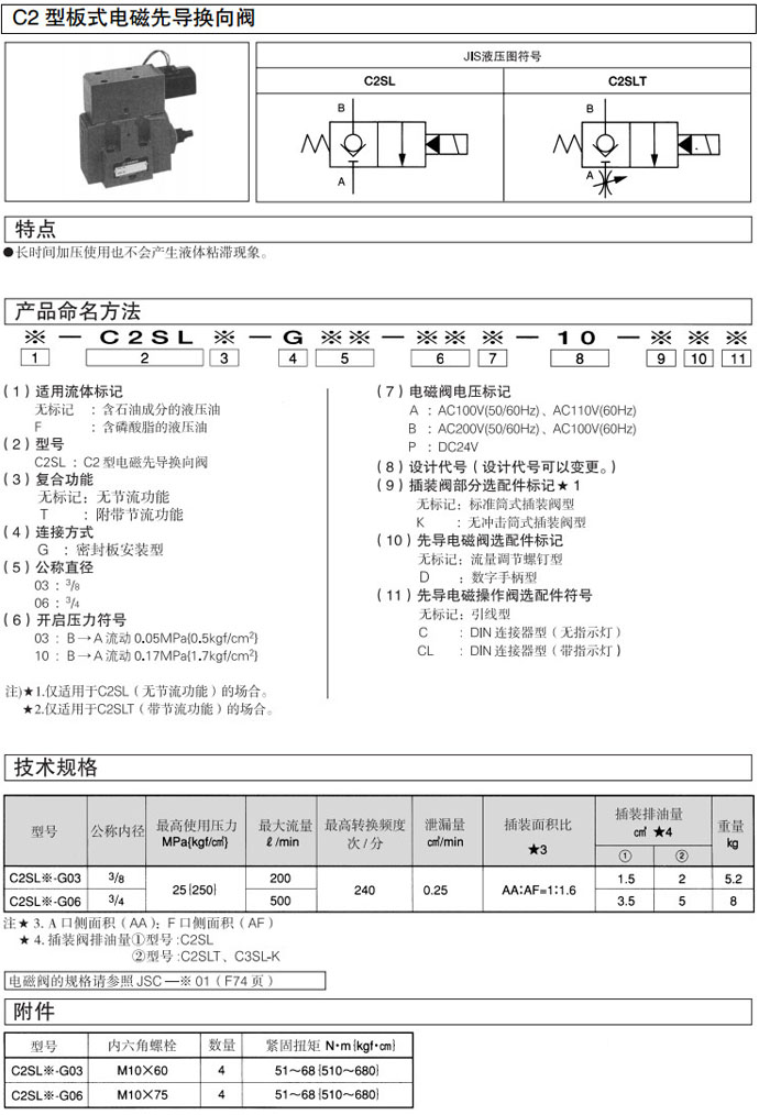 C2SL-G03,C2SL-G06,C2SLT-G03,C2SLT-G06,C2SL-G03-03A-10,C2SLT-G06-03P-10,DAIKIN板式電磁先導(dǎo)換向閥
