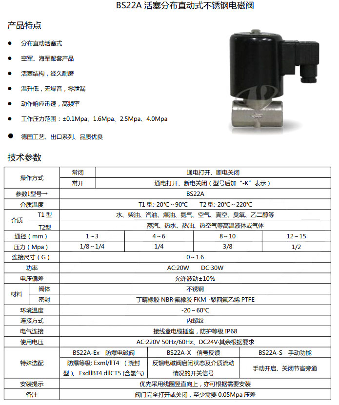 BS22A-DN1,BS22A-DN3,BS22A-DN4,BS22A-DN6,BS22A-DN8,不銹鋼電磁閥
