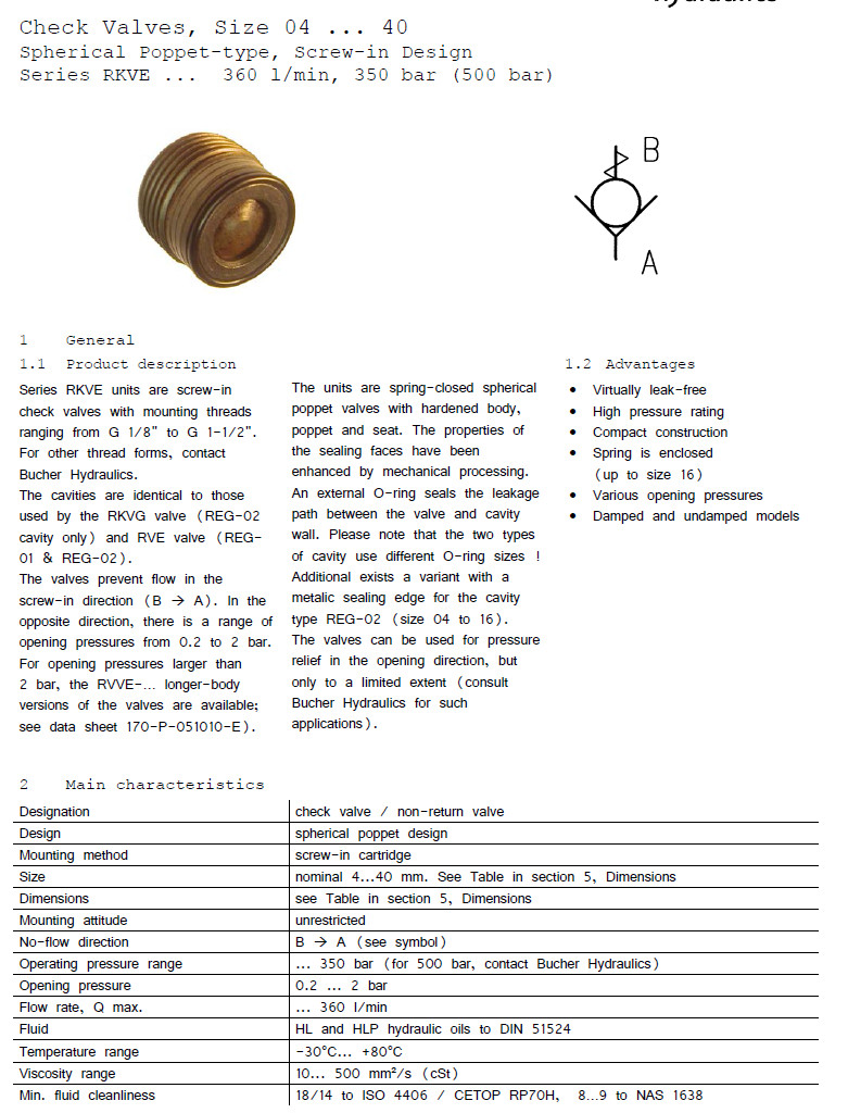 RKVE-G-04,RKVE-G-06,RKVE-G-08,RKVE-M-10,RKVE-M-16,RKVE-U-25,RKVE-U-32,Bucher止回閥 |