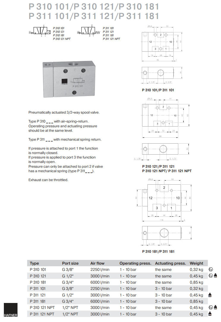 P310101,P310121,P310181,P311101,P311121,P311181,P310121NPT,P311121NPT,Hafner滑閥