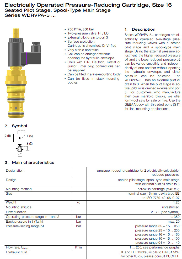WDRVPA-5BO-35,WDRVPA-5BO-25,WDRVPA-5BO-16,WDRVPA-5BO-10,WDRVPA-5BO-04,Bucher減壓閥