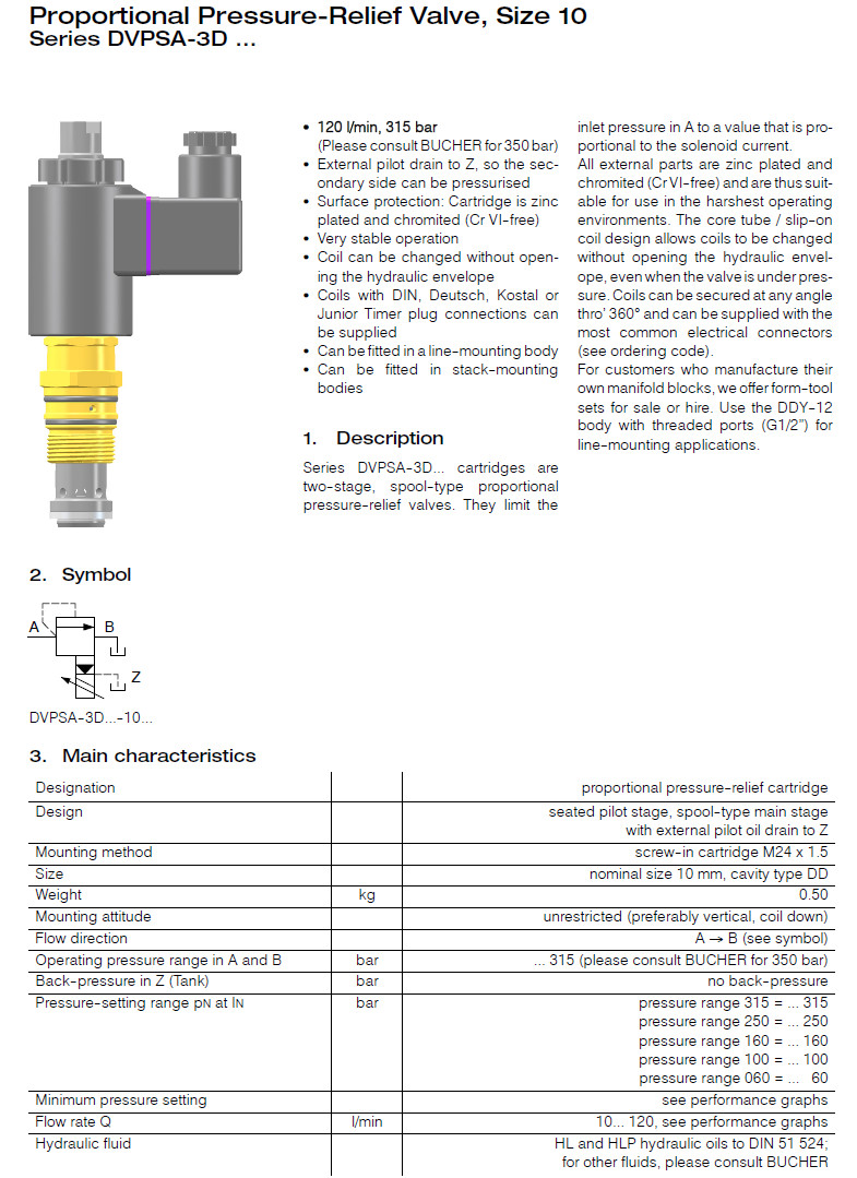 DVPSA-3D-250-10-2,DVPSA-3D-160-10-2,DVPSA-3D-060-10-2,DVPSA-3D-315-10-2,Bucher比例溢流閥 |