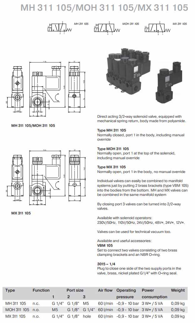 MH311105,MOH311105,MX311105,Hafner電磁閥