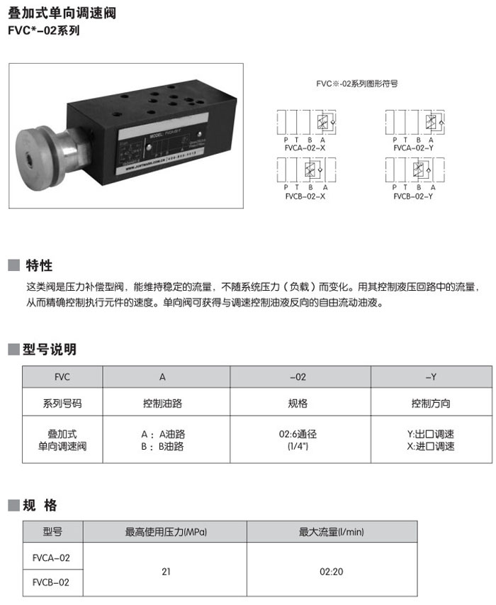 FVCA-02-X,FVCA-02-Y,FVCB-02-X,FVCB-02-Y,疊加式單向調(diào)速閥